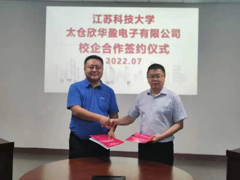 7月7日下午,周南平校长带队赴太仓欣华盈电子有限公司参加产学研合作签约活动,一同前往的有党委常委、组织部长李恒川,对外合作处处长佘建国,船舶与海洋工程学院院长窦培林及副院长周效国。太仓市教育局局长李广耀,太仓市双凤镇副书记唐正道,太仓欣华盈电子有限公司董事长兼总经理钟海军、执行总经理徐国彬、副总经理林连凯参加签约活动,太仓欣华盈电子有限公司副总经理田作磊主持签约活动。