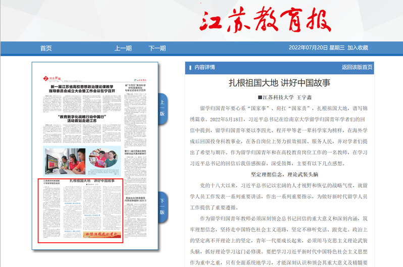 江苏教育报2022年7月20日2版 http://epaper.jsenews.com/Article/index/aid/6917504.html