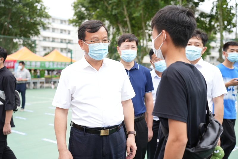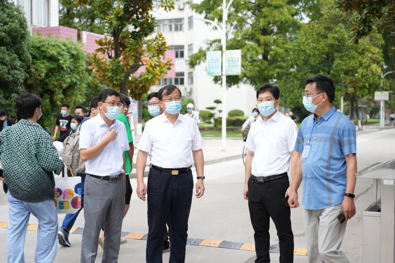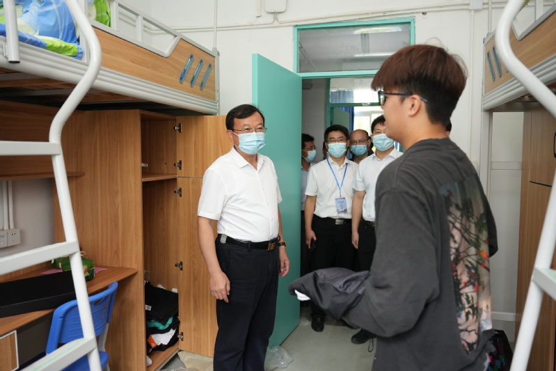 校党委书记葛世伦,校长周南平,校党委副书记汤建,校党委常委、副校长潘锦全、胡爱祥等校领导前往迎新现场,看望并慰问迎新工作人员和学生志愿者。葛世伦书记详细了解学校校车接驳处、核酸检测点、新生报到处、学生宿舍、食堂等各迎新重要点位的工作情况,要求各部门优化流程、统筹部署,确保新生顺利安全入校,努力提供更贴心、细心、耐心的服务,让江科大给新生和新生家长留下良好的 “第一印象”,并与2022级新生及新生家长进行了亲切的交谈与真诚的沟通。