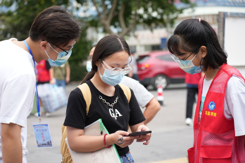 入校核验点、接驳车上下车处、宿舍楼中……校园的每个角落都有热情洋溢的迎新志愿者们忙碌的身影,他们身穿统一的红马甲,为学弟学妹们搬运行李、答疑解惑,有条不紊地引导他们完成核酸报告、行程码和健康码核验、档案提交、校园卡领取、入住手续办理等流程,使新生们切实感受到学校的贴心关怀。“西门的志愿者除了要查验新生的健康码、核酸报告之外,还要承担新生行李的搬运工作。虽然辛苦,但看到学弟学妹们一扫初到的紧张时,我更加确定我所做的志愿活动是有意义、有价值的。”来自经济管理学院的张玥同学自豪地说道。