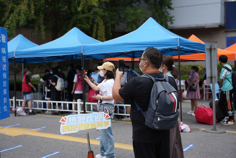 儿行千里母担忧,因为防疫防控需要,新生报到时,家长们无法送孩子进校。在将孩子送至校门口,由志愿者引导孩子坐上校内接驳车后,许多家长仍然在校门口张望,满是不舍与惦记。为解家长担忧,学校在多个平台对校内迎新现场进行直播,在梦溪校区和长山校区门口都设有“家长休息区”,家长们在休息区聊天,排解心中的担忧与离愁,老师们也前往休息区与家长们交流,告诉他们现在各种通讯工具和交通工具都很方便,江科大也早已为孩子们的学习和生活做了全面细致的安排,“只要进了江科大的门,一切都不用你们担心,有老师、有学长学姐和志愿者们!”