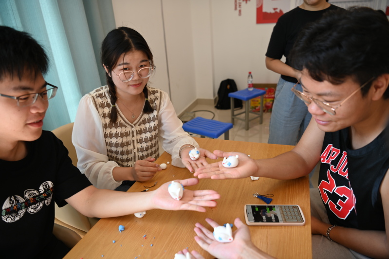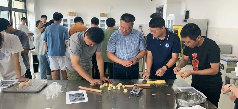 “白撞粉、白撞紫、白撞绿、白撞黄,多种颜色馅料配上花生、玉兔、柿子等模具做出来月饼。”船舶与海洋工程学院邀请到镇江市面塑非遗文化传承人张娟老师,为同学们讲解并示范了面塑这项非遗文化技艺。在她的指导下,大家都成功地做出了独属于自己的玉兔和月饼。土木工程与建筑学院也组织中秋不能回家的同学和老师一起手工制作冰皮月饼,以此寄托对家人的思念。粮食学院开办了“烘焙小课堂”,师生们组队制作了美式薄饼和老婆饼。满室香甜、温馨和美,亲切融洽的氛围拉近了彼此间的距离。