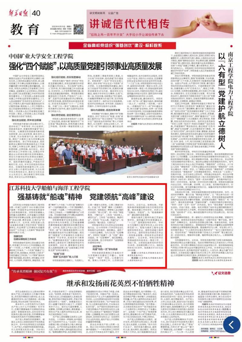 学院党委紧紧围绕江苏省高水平大学高峰计划建设工作重心,发挥“船舶”“海洋”特色,以党建为引领,聚焦人才培养工作,以改革创新为动力,立足行业,发挥优势,不断服务海洋强国战略与地方区域经济发展,推动党建工作和学科、科研工作“双融合、双促进”,为“船海高峰学科”建设提供坚强支撑。