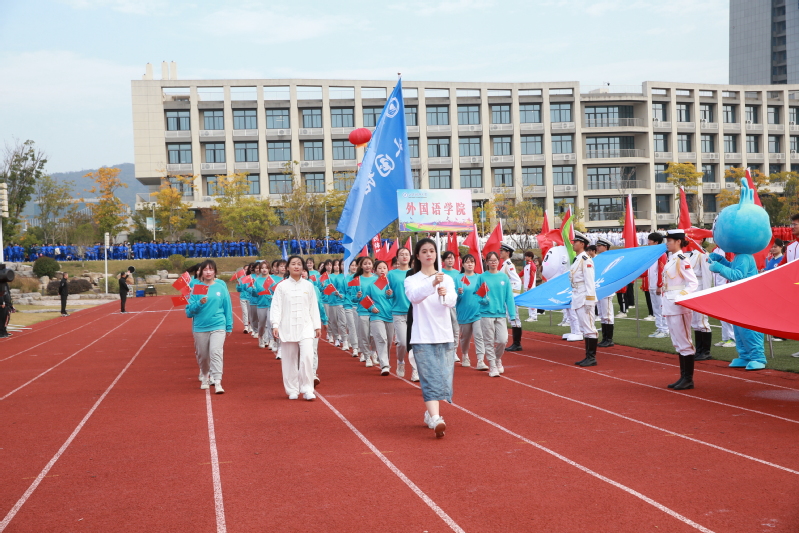 迎着朝阳,国旗护卫队成员护卫着国旗,踏着整齐的步伐,昂首阔步走向主席台。在国旗方阵和校旗方阵的带领下,裁判员方阵、教职工方阵和20个学院的运动员代表迈着铿锵有力的步伐依次入场,展现了学校师生昂扬向上、拼搏奋进的精神风貌。全体师生列队肃立,注视着五星红旗冉冉升起,齐声唱响《中华人民共和国国歌》。