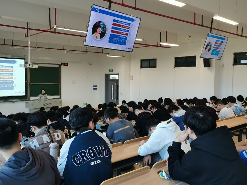 陆鑫为同学们介绍了一些就业基础知识,同时演示了学校的学生就业指导服务中心网站的使用,提醒同学们要及时在系统中进行生源上报、个人信息规范填写、就业推荐表填报等工作。同时,陆鑫还建议准备考研的同学们争取“两手抓”,同时做好升学和求职的准备。学生在求职的过程中,也要学会调整心态。如果遇到困难,可以向学院求助,学院会及时给予同学们必要的帮助。