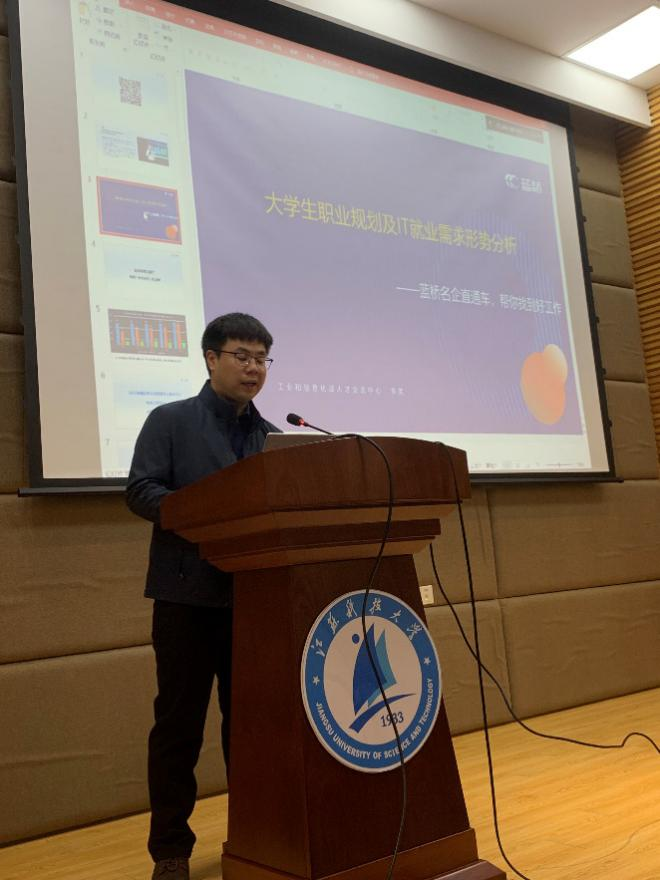 在持续近1个小时的讲座中,李亮老师结合多年来在就业指导工作中的丰富经验,以当前计算机专业学生就业状况和就业市场的实际特征出发,从“如何在快速迭代的互联网行业立足”、“国内一线互联网企业用人标准”以及“名企就业岗位推荐”三大方面展开讲解。分别介绍了简历制作、面试技巧、网签流程等微观层面;地域选择、面试机会、合同签署等中观层面;职业清晰度、职业定位、职业价值等宏观层面。从三个维度抽丝剥茧,纵深讲解,通过理论剖析、案例展示、实证数据,深入浅出地向现场同学解读了新形势下开展职业规划的意义、怎样进行就业选择、如何自立于日渐激烈的互联网就业市场等广大同学切实关注的热点问题。