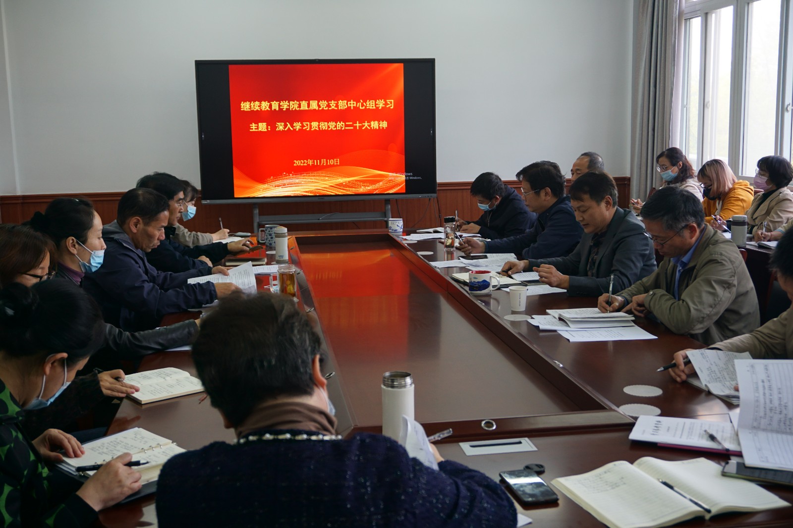 日前,继续教育学院直属党支部召开中心组学习扩大会,认真学习落实贯彻党的二十大精神。校巡学组成员朱仁庆教授参加巡学旁听。会议由学院直属党支部书记、院长仲崇光主持,学院中心组全体成员及教职工参会。