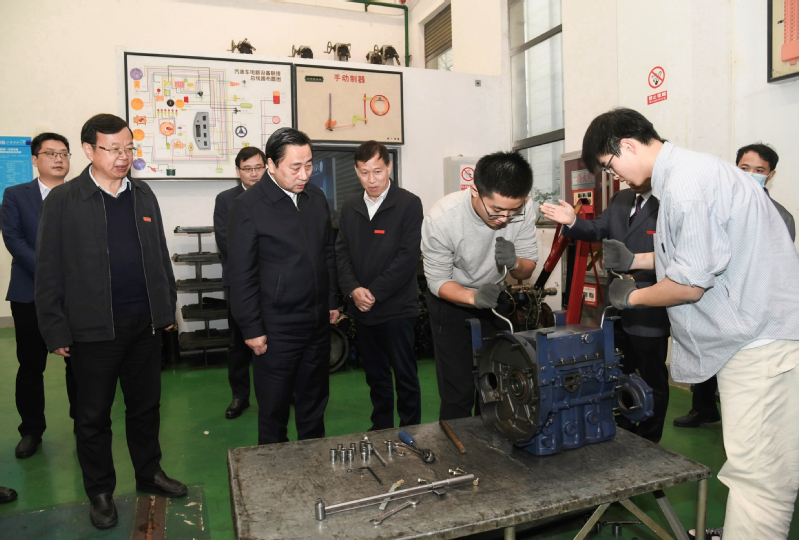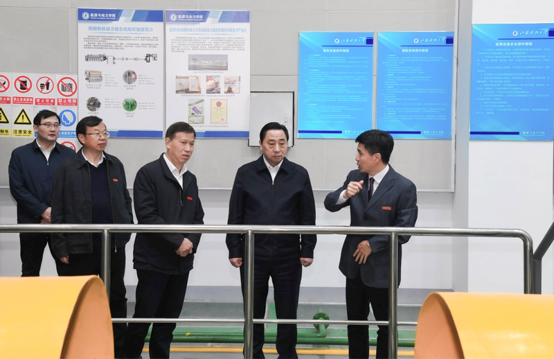 马明龙书记一行首先来到能源与动力学院重装实验楼,参观了船舱综合实训实验室、柴油机拆装实训室、发动机性能测试实验室、轮机综合机舱实验室和振动噪声实验室,观看了氢能源船舶演示、舰船风机盘管实验、消声减震实验等项目,对新蒲京官网积极承担和参与国家重大科研项目的研发,在突破“卡脖子”技术问题等方面所作的努力予以肯定。马书记与在场师生开展互动交流,勉励学生为中国式现代化贡献青春力量。