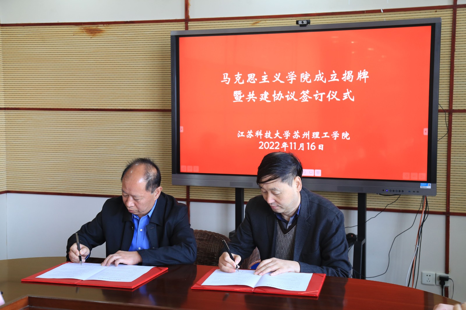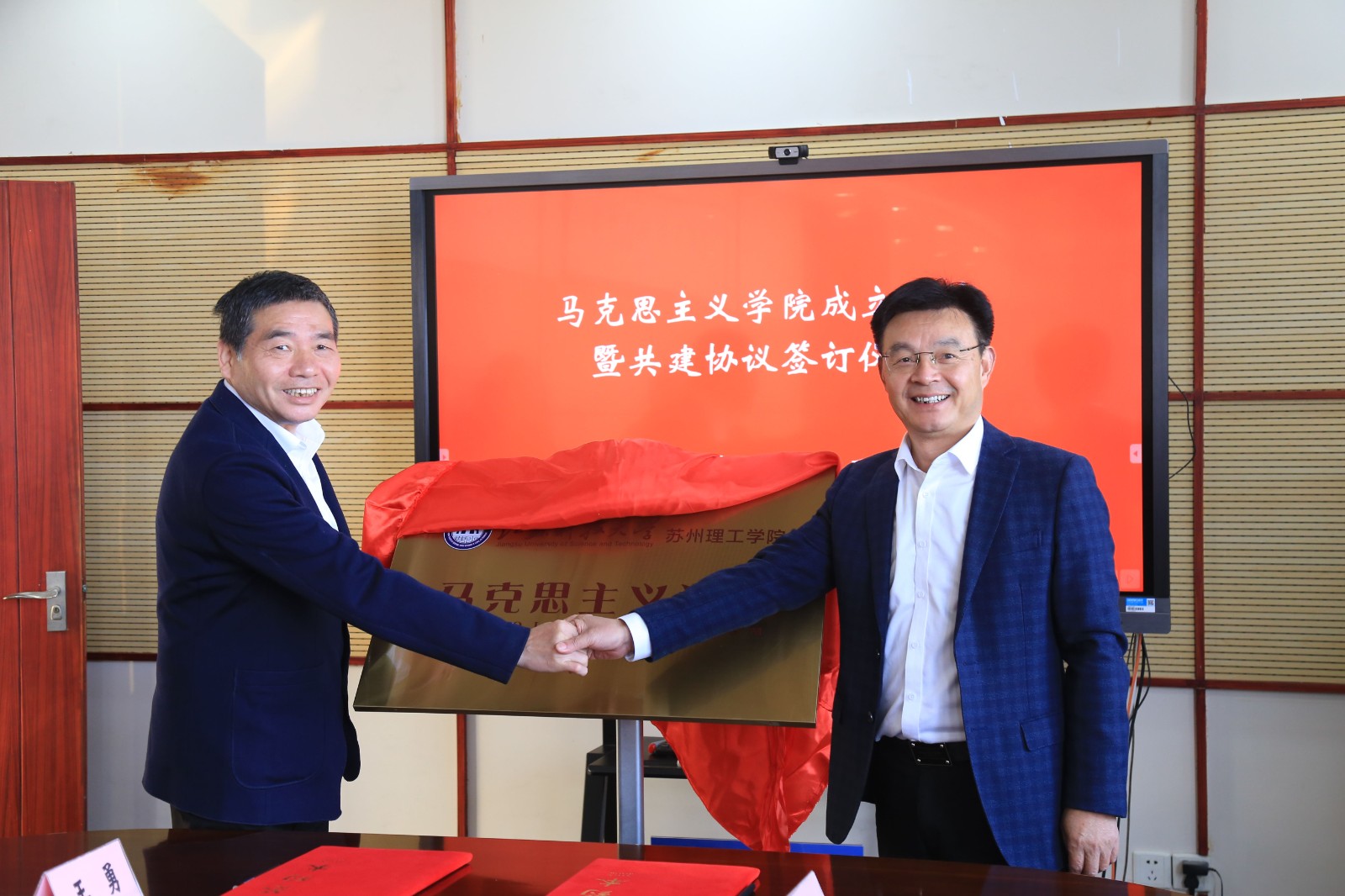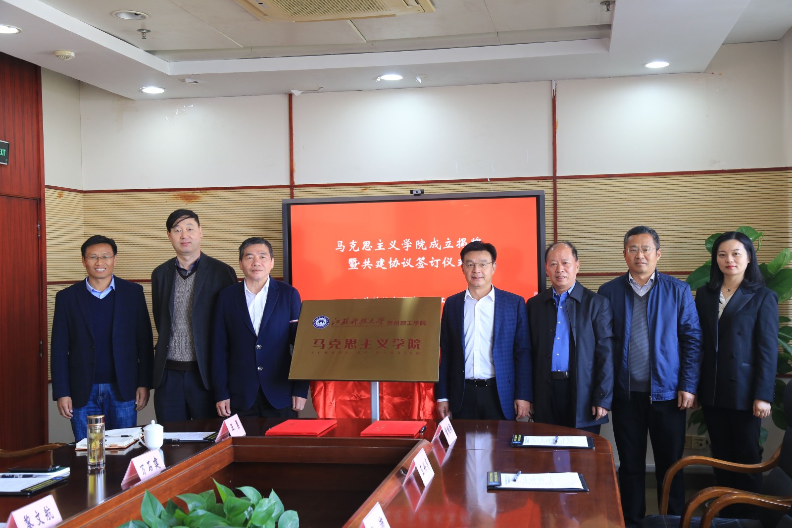 11月16日上午,新蒲京娱乐场官网3245苏州理工学院举行马克思主义学院成立揭牌暨共建协议签订仪式。新蒲京娱乐场官网3245党委常委、副校长谈镇,人文社科处处长孟庆良、马克思主义学院院长洪波、继续教育学院院长仲崇光等出席仪式。苏理工党委副书记、院长王志东带领苏理工领导班子、全体思政课教师、公共课教师代表等参加活动。校党委常委、组织部长、苏理工党委书记李恒川主持。
