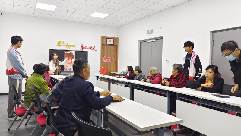 本学期以来,已经顺利开展四期,以润州山路社区为定点服务对象,镇江市图书馆余鹏主任全程指导,20名青协志愿者同学一对一高质量服务了50余名社区老人,取得了良好的互动效果,将新蒲京娱乐场官网3245服务社会的理念传播开来。