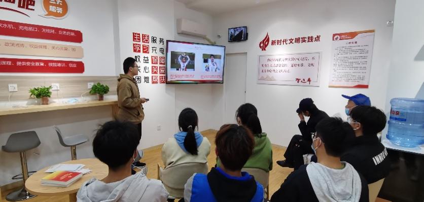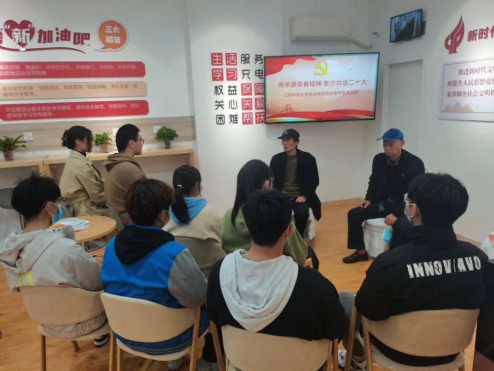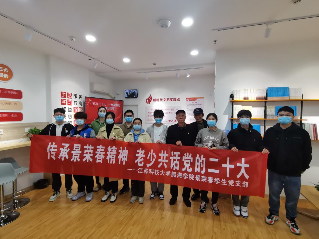 为深入学习贯彻党的二十大精神,增强党支部的政治功能和组织功能,提高党员的先锋模范意识,保证党支部能够团结带领群众把党的路线方针政策和党中央决策部属贯彻落实好,11月24日,船海学院景荣春学生党支部联合镇江高新区蒋乔街道七里社区开展了“传承景荣春精神 老少共话党的二十大“主题党日活动,青年党员与老党员相聚一堂,共温景荣春教授一辈子追求党、一生教书育人的事迹、共学党的二十大精神,共话新发展、共赴新时代。景荣春学生党支部书记、学生党员、积极分子及七里社区两位老党员参加活动。