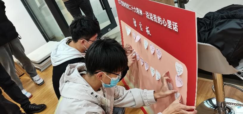 老党员教诲寄心愿、青年人奋进铭嘱托、党性光辉代代传。通过此次党日活动,支部凝聚力得到提升,支部党员从老党员身上学习到了老一辈共产党人的优良传统和理想信念,坚定了他们在党的二十大精神指引下,用行动踔厉奋发、无私奉献、勇毅前行的决心。在“学习党的二十大精神 说说我的心里话”环节,支部党员与积极分子用笔写下来“‘坚定四个自信、增强四个意识’、强国复兴梦、青年勇担当”、“请党放心、强国有我”等对党和国家的承诺之言。
