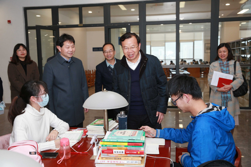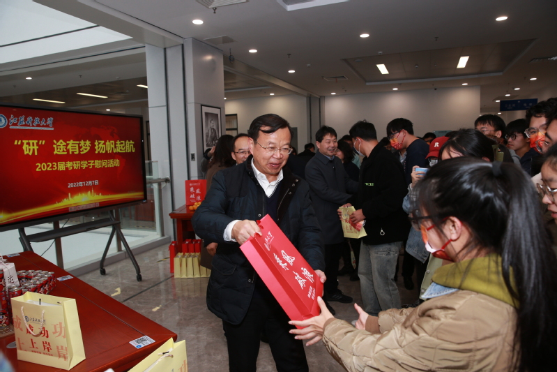 助力考研梦,情暖学子心。12月7日下午,校长周南平,党委常委、副校长胡爱祥,党委常委、宣传部部长周春燕,党委学生工作部、学生工作处、党委研究生工作部、研究生院等职能部门的负责人共同走进图书馆考研自习室慰问正在复习备考的2023届考研学子,为即将踏上考研“战场”的学子们送去勉励和“考研暖心包”。