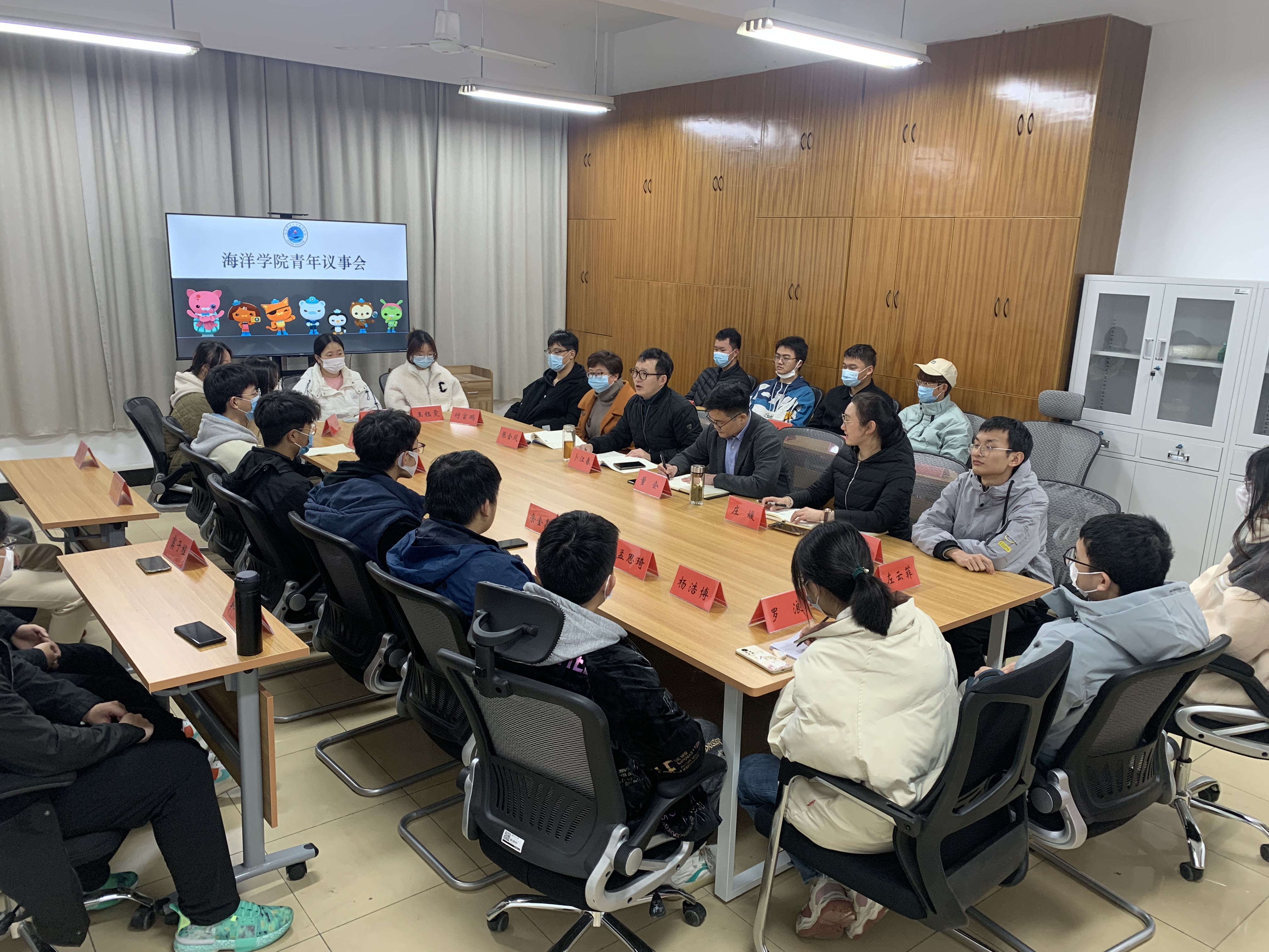 为深入贯彻以学生为中心工作理念,通过集体座谈,听取青年意见、了解青年需求。新蒲京娱乐场官网3245海洋学院于2022年11月29日在梦溪校区综合楼D302举办海洋学院“青年议事会”活动,议事会由海洋学院党委副书记卜江春主持,学院教务办副主任张金凤、团委副书记董会、辅导员庄媛,本科生代表、研究生代表、学生组织代表参会。