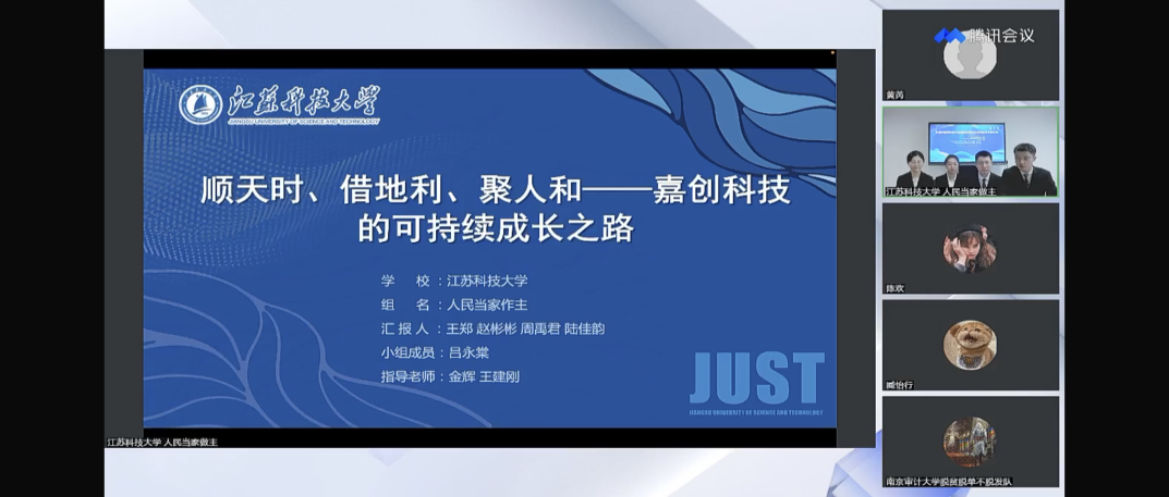 大赛共有来自省内外17所高校商学院的43支队伍入围晋级赛,通过晋级赛产生了24支决赛队伍。在新蒲京官网经济管理学院金辉和王建刚老师指导下,王郑、陆佳韵等5位MBA研究生组队打造的《顺天时、借地利、聚人和——嘉创科技的可持续成长之路》案例在激烈的角逐中斩获决赛三等奖,新蒲京娱乐场官网3245荣获“最佳组织奖”。