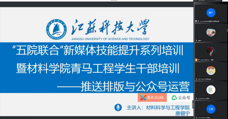 本期培训邀请到了材料学院宣传部部长唐俪宁作为主讲人,她对微信推文的制作和公众号的运营进行了详细的介绍。