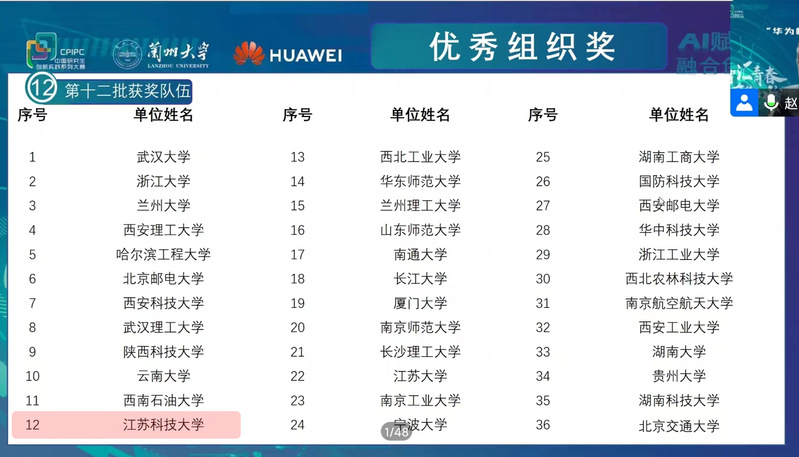 “华为杯”第四届中国研究生人工智能创新大赛于2022年4月正式开赛,共有来自全国212所高校的1217支队伍报名参赛。在新蒲京娱乐场官网3245党委研究生工作部指导下,新蒲京官网计算机学院承办了本届大赛的校内选拔赛。大赛分为技术创新与应用创意两个类别,报名参赛队伍来自全校各个学院,共有32支队伍,100多名选手参赛。校内专家在技术实践细节、项目材料的撰写给出了详细的评论与指导,各团队认真打磨参赛作品。最终,新蒲京官网培育的3个项目入选技术创新组全国29强,晋级全国总决赛。大赛期间,新蒲京官网承办单位为参赛选手认真服务,积极统筹协调学院资源,帮助参赛团队解决答辩场地筹备、路演设备调试等各类问题。新蒲京官网在赛事相关工作中的积极性及参赛项目质量受到大赛组委会的高度认可,新蒲京官网因此荣获大赛组委会颁发的“优秀组织奖”。