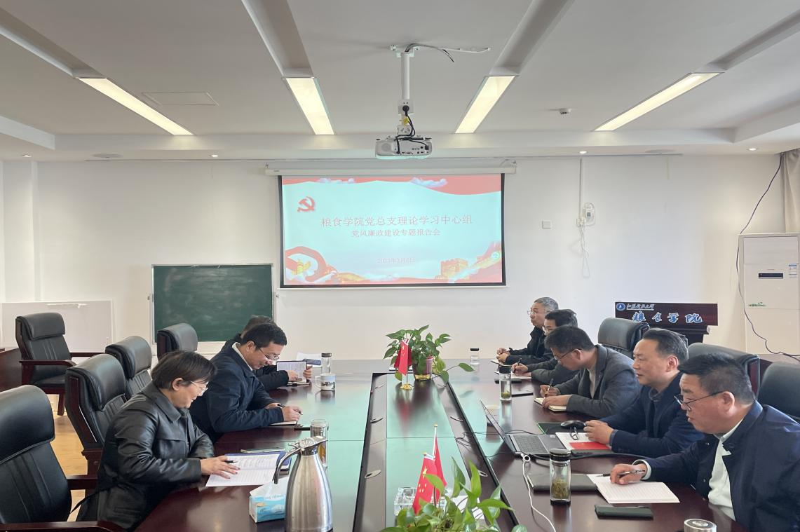 3月6日下午,粮食学院党总支在436会议室开展专题学习,特邀校纪委副书记、党委巡察工作办公室主任陶海洋“送纪上门”,粮食学院党总支理论学习中心组全体成员参加学习交流。