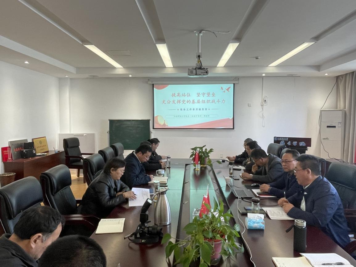 党总支书记梁忠臣要求学院各级领导干部要强化全面从严治党主体责任意识,增强学习党纪、法规的自觉性和主动性,做政治上的明白人,加强作风建设,认真履行“一岗双责”,持续深化巡察整改工作,提升学院管党治党能力,以高质量党建引领学院事业高质量发展。与会人员表示,要自觉加强学习、提升站位、履职尽责,充分发挥好先锋模范作用和基层组织的战斗堡垒作用,更好担负起教书育人的光荣使命。