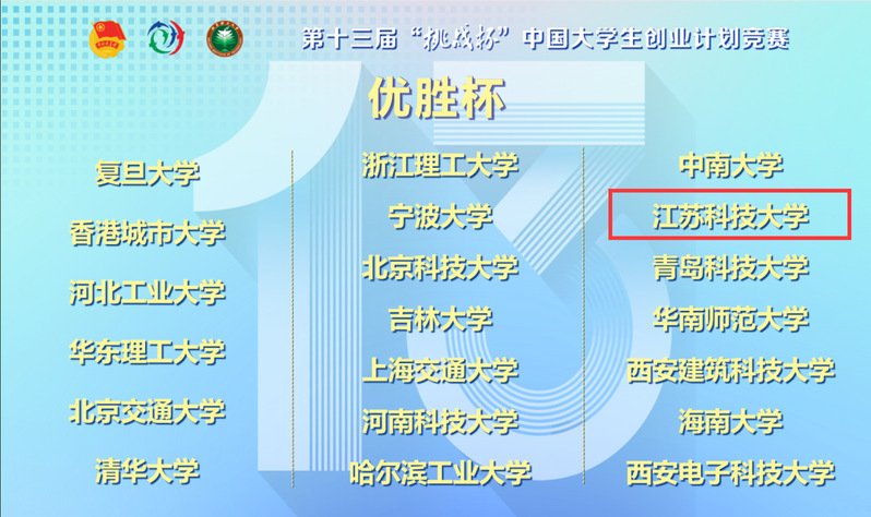 3月17日-19日,第十三届“挑战杯”中国大学生创业计划竞赛全国决赛在北京理工大学举办。新蒲京娱乐场官网3245首次捧得“全国优胜杯”,1件作品获得全国金奖、2件作品获得全国银奖、2件作品获得全国铜奖,团体总分位列江苏省第3名,实现“挑战杯”创业计划竞赛新突破。