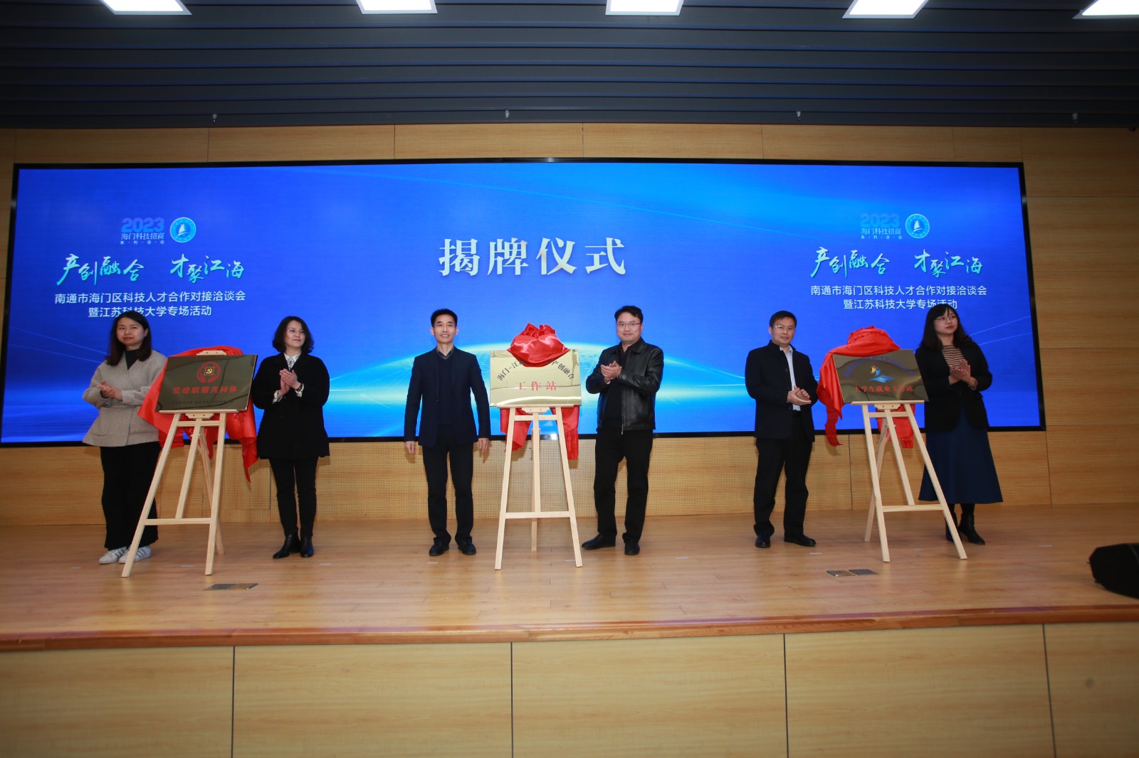南通市海门区人社局副局长张志强介绍了南通市海门区基本情况及人才引进的相关政策,学生处朱金处长向到场企业嘉宾做2023届毕业生人才推介。参会领导和新蒲京官网相关职能部门负责人共同为“新蒲京娱乐场官网3245-海门产创融合工作站”、“新蒲京娱乐场官网3245大学生实习就业工作基地”、“新蒲京娱乐场官网3245-海门科技局党建联盟共同体”揭牌,新蒲京官网博士团队与地方企业合作的“钛合金植入物支架成骨诱导抗菌涂层结构功能一体化新材料研制”等6个科技项目进行了现场集中签约。