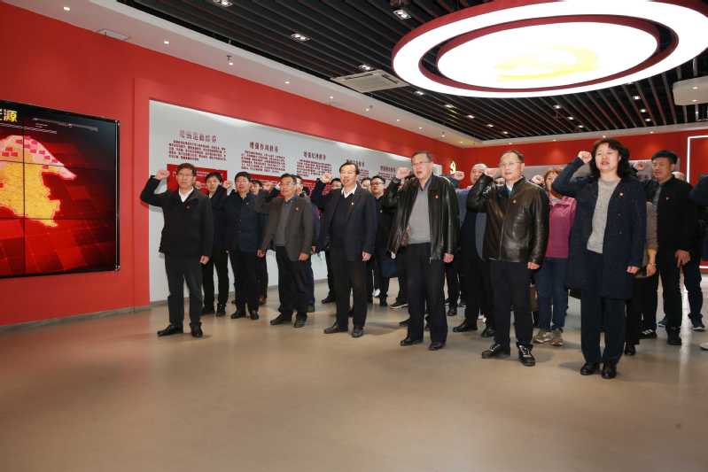 在教育馆宣誓厅,面对党旗,党委书记葛世伦带领全体人员一起重温入党誓词。铿锵有力的宣誓声响彻大厅,让现场所有人都深受感染。