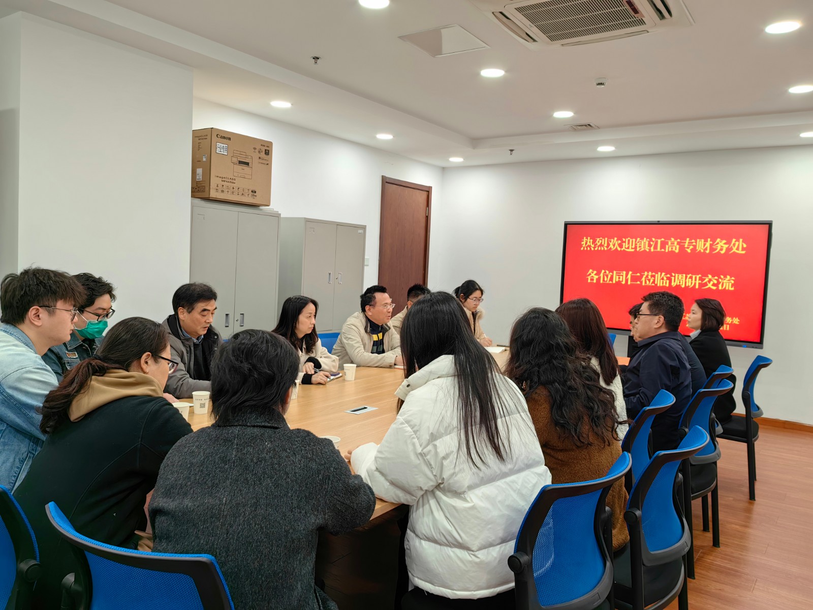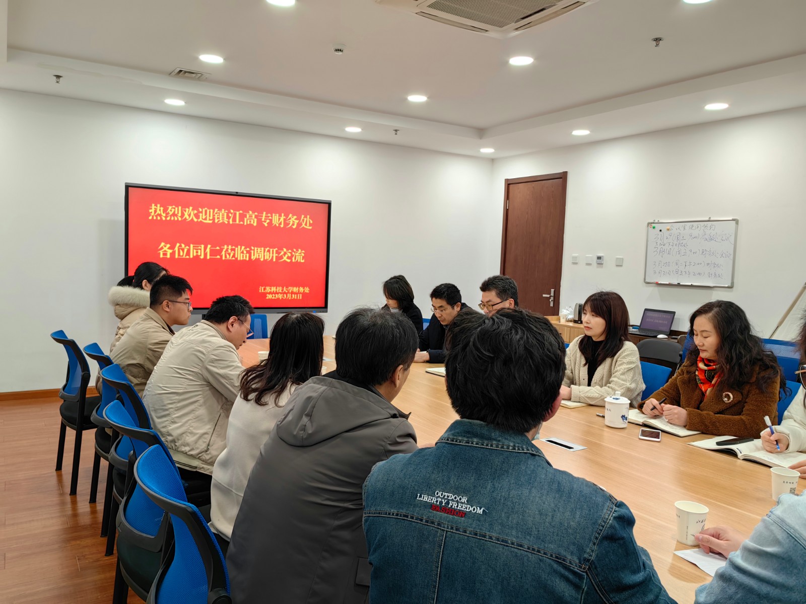 3月31日上午,镇江高等专科学校财务处处长周文华一行9人来新蒲京官网财务处调研。新蒲京官网财务处处长江建蓬,副处长岳喜马、凌芸,教职工代表出席会议。