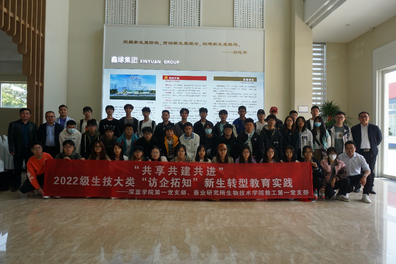 为帮助大一新生更好的进行专业认知,4月16日,深蓝学院组织2022级生物技术大类蚕学班学生,前往南通海安市鑫缘茧丝绸有限公司,开展了“共享共建共进”2022级生技大类“访企拓知” 新生转型教育实践活动。生物技术学院党委副书记唐亮、蚕学系主任赵国栋、团委书记邹金城、生物技术大类辅导员张伟伟参与了本次活动。