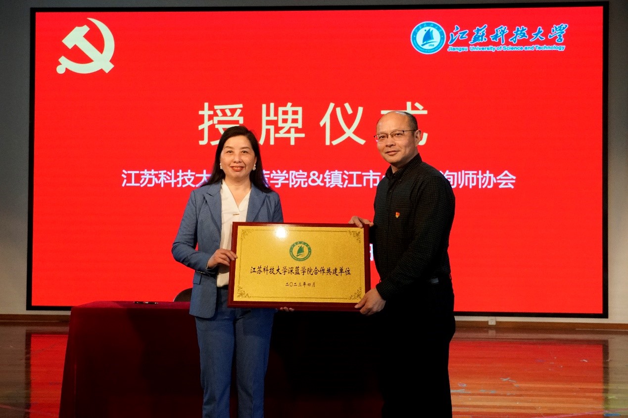 近日,深蓝学院与镇江市心理咨询师协会党支部合作共建启动仪式在梦溪校区东苑四楼举行,学院党总支书记、院长杨建超,市心理咨询师协会会长林霞出席签约仪式并讲话,镇江市部分心理咨询师及学院师生代表、志愿者参加了本次活动,签约仪式由深蓝学院党总支副书记秦向荣主持。