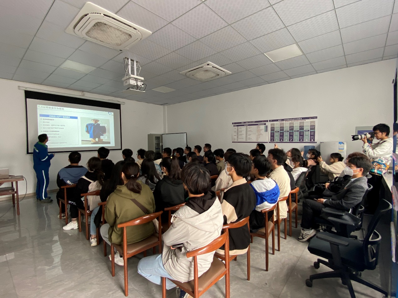 正式进厂前,公司安全环保部工作人员为同学们开展安全教育培训,详细介绍了企业价值观、安全观和行为规范,强调后续参观过程中的注意事项等,并对急救设施的使用进行培训,以此提高同学安全责任意识,保障参观活动的安全进行。
