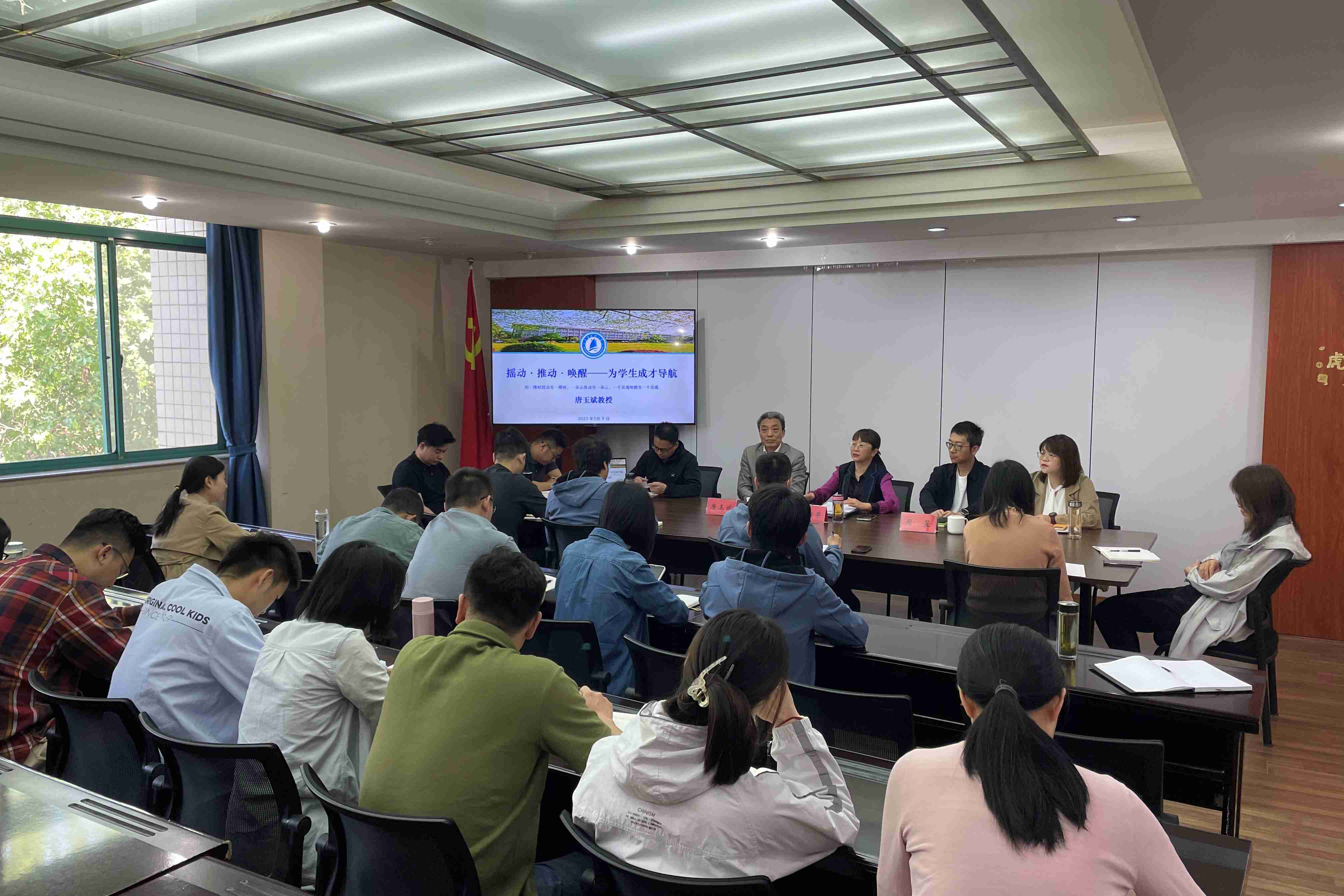 最后,唐教授强调辅导员工作一定要尊重学生,面对不同学生的不同问题,要动之以情、晓之以理。唐教授建议在座辅导员,在平时工作中,可以通过收集获取不同的学生案例作为班会教育内容,可以利用生涯规划带动学涯规划,营造班级积极向上的氛围,唤醒学生的理想和抱负。