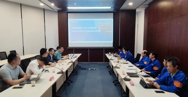 中国船舶集团首席专家、上海外高桥造船有限公司总工艺师刘建峰对新蒲京娱乐场官网3245的到访表示热烈欢迎,设计部、信息部、数字化部、精度技术部、科技发展部相关负责人参加活动。