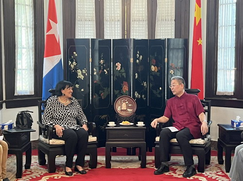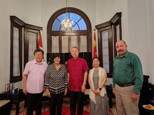 2023年5月15日,驻古巴大使马辉会见古中蚕桑科技合作中心负责人、原古巴农业部长和农业科学院院士佩雷斯,中古蚕桑科技合作中心中方负责人、蚕桑专家李龙等,就中古农业合作交换意见。