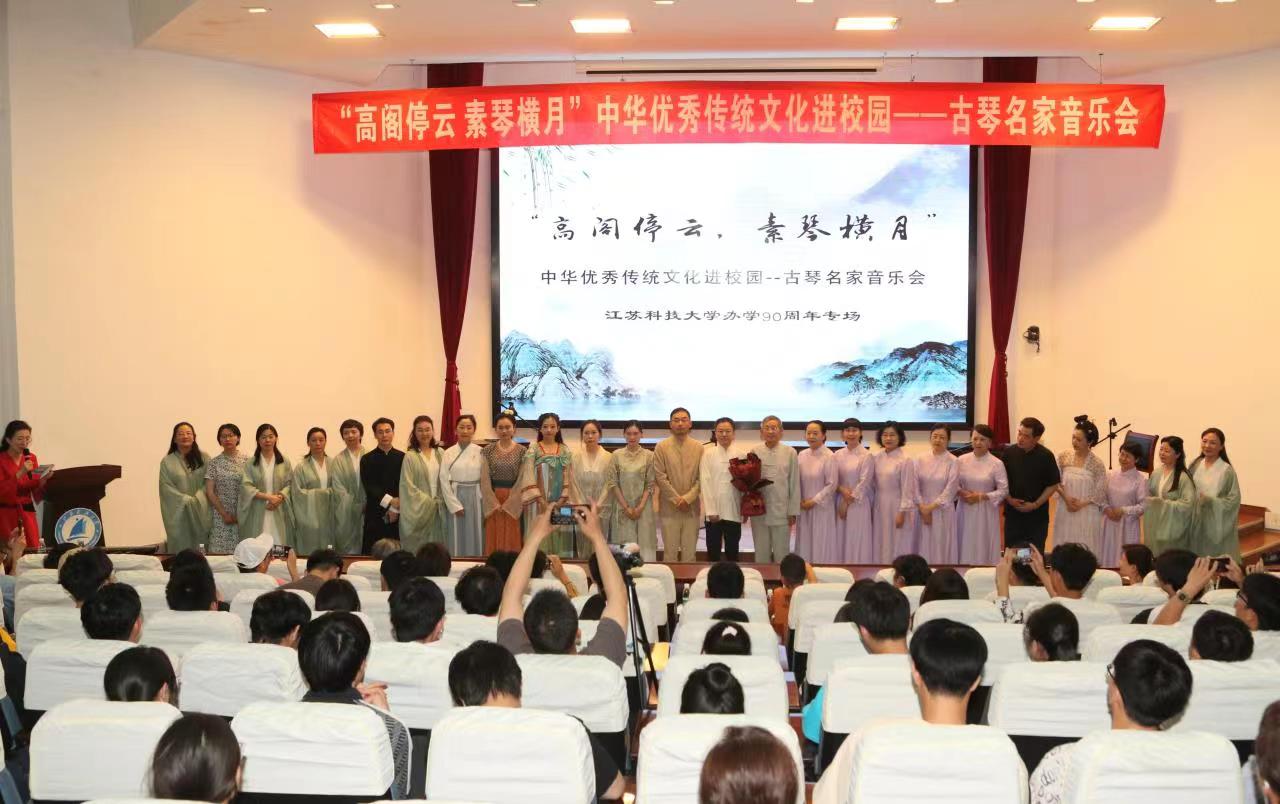 为全面贯彻落实党的二十大精神,讲好非遗保护中国故事。6月10日晚,由共青团新蒲京娱乐场官网3245委员会主办,海洋学院、马克思主义学院与镇江梦溪琴社共同承办的文化和自然遗产日中华优秀传统文化进校园暨“高阁停云,素琴横月”古琴名家音乐会在梦溪校区演讲厅举行。