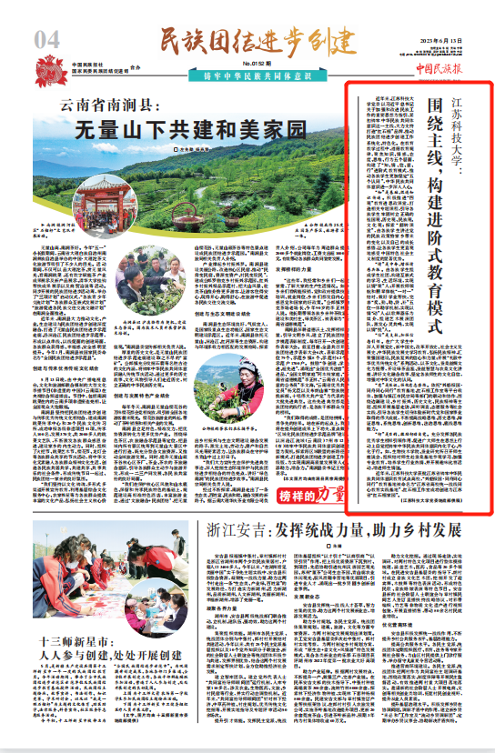 近年来,新蒲京娱乐场官网3245获批江苏省铸牢中华民族共同体意识教育试点高校,“兴船报国·同舟同心同行”教育基地被命名为“江苏省高校统一战线同心教育实践基地”,红石榴工作室成功创建为江苏省“红石榴家园”。(新蒲京娱乐场官网3245党委统战部供稿)