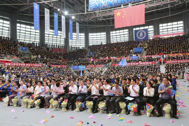 校党委书记葛世伦,校长周南平,学校1995届校友、中船九江海洋装备(集团)有限公司党委书记、董事长程柏林,校领导景旭文、汤建、王加友、郑培钢、谈镇、任南、胡爱祥,校党委常委周春燕、刘新波,新蒲京娱乐场官网3245学位委员会委员、相关职能部门领导、2023届全体毕业生、辅导员、班主任,导师和教职工代表,家长代表、校友代表,热情相聚,深情话别。校党委常委、副校长潘锦全,组织部部长李恒川在张家港校区分会场出席典礼,张家港校区相关部门、部分教师、家长代表、毕业生580余人参加了现场典礼。