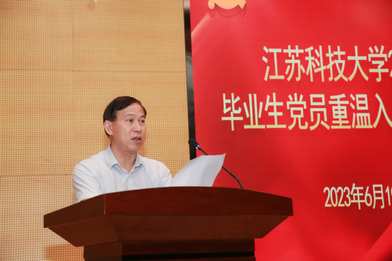 活动在庄严雄壮的《国际歌》声中拉开帷幕。现场,一段回顾学校发展精彩瞬间的短片,再现学校办学90年以来取得的骄人成绩。来自计算机学院2023届毕业生党员代表陈雨在发言中回忆了自己入党的心路历程,并向全体毕业生党员发出倡议:努力弘扬“船魂”精神,用实际行动践行“请党放心、强国有我”的青春誓言。