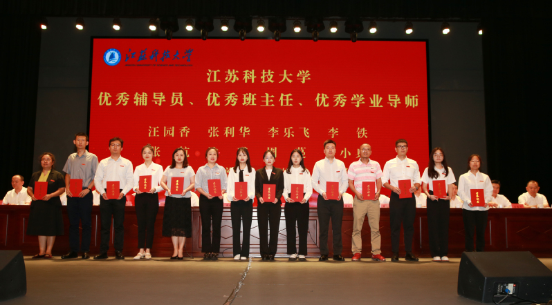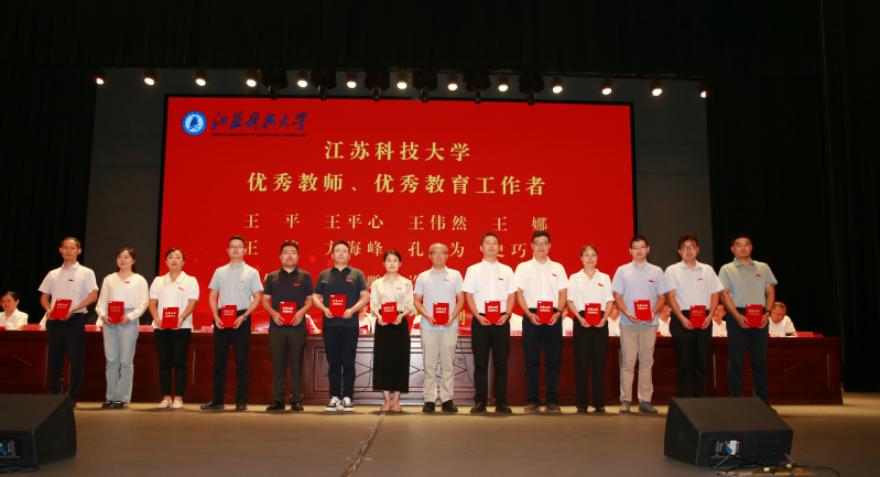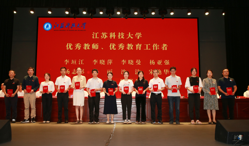 在庄严的国歌声中,大会拉开帷幕。校党委书记周南平主持大会;校党委副书记汤建宣读《江苏省总工会关于表彰2023年省五一劳动奖和省工人先锋号的决定》《关于表彰镇江市模范职工之家、模范职工小家、优秀工会工作者、优秀工会之友和十佳模范职工之家、十佳模范职工小家、十佳优秀工会工作者的决定》《关于表彰镇江市三八红旗手、镇江市三八红旗集体的决定》《关于命名“镇有一手”科技创新女党员示范岗的通知》《关于表彰2022-2023学年优秀教师、优秀教育工作者和先进集体的决定》《关于表彰从事教育工作满三十年教职工的决定》;校党委常委、副校长胡爱祥宣读《关于表彰2022-2023学年优秀辅导员、优秀班主任和优秀学业导师的决定》,在全场热烈的掌声中,与会领导为受表彰的先进集体和个人代表颁奖。