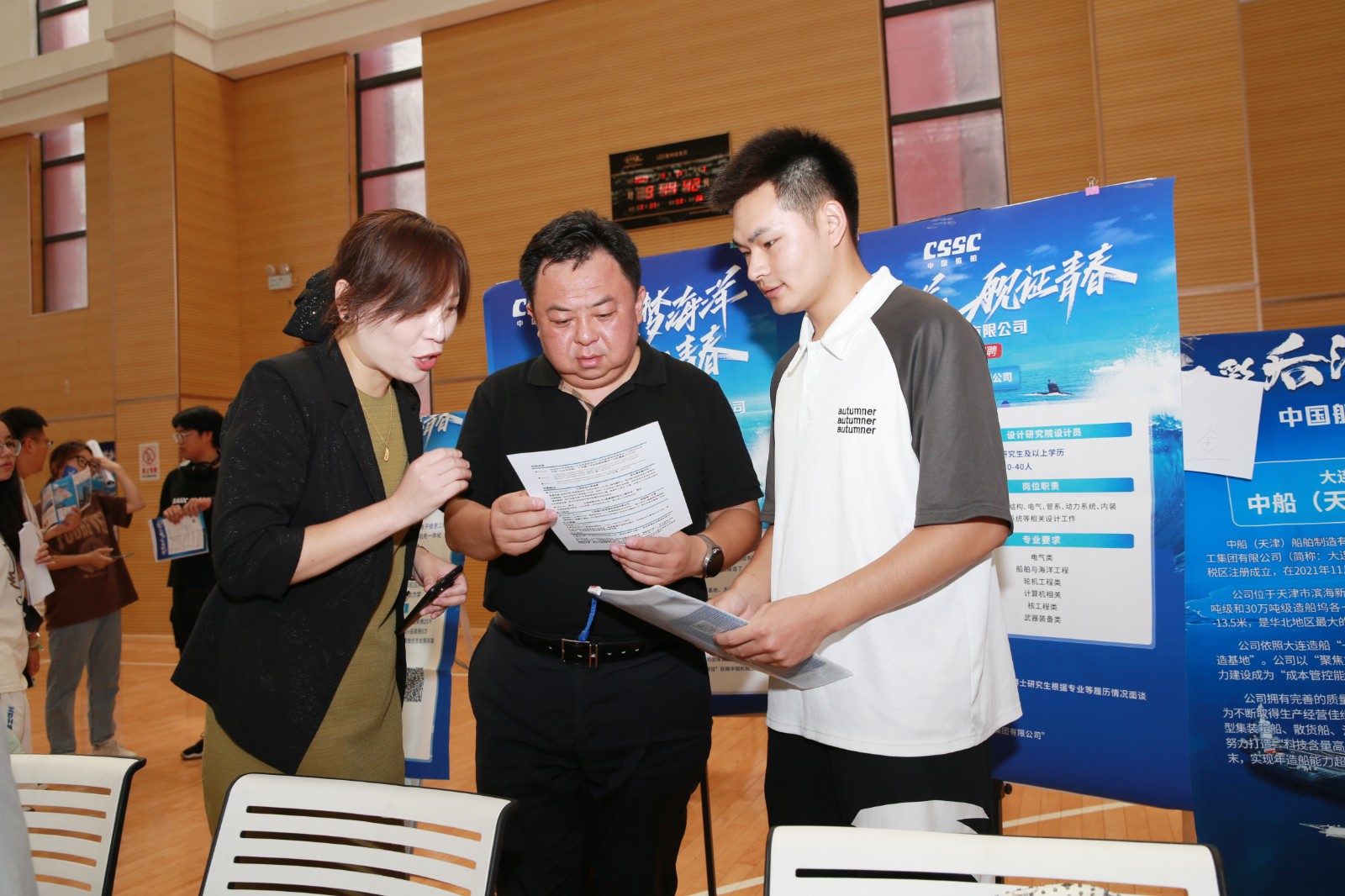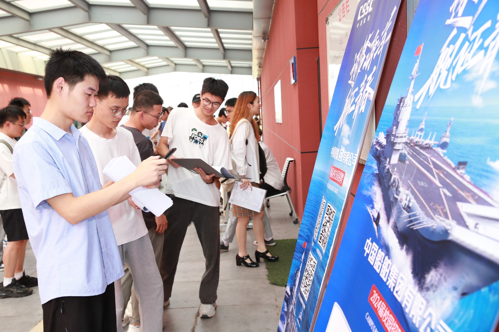 本次招聘会共54家用人单位参会,专业需求覆盖各个学院,吸引了近4000名应届毕业生前来挑选岗位。同学们积极与用人单位代表交流,踊跃投递简历,407名毕业生现场达成了初步就业意向。招聘会前期,各学院主动与企业对接,广船国际、沪东中华、黄埔文冲、第七〇八研究所等单位向重点需求专业的学生做宣讲,宣讲会有效搭建了单位与毕业生们之间的交流平台,“新蒲京娱乐场官网3245的培养方向和我们企业需求相匹配,学生专业基础扎实,培养潜力大。学生们投递热情也很高,已经收到了一百来份简历。”中船黄埔文冲船舶有限公司人力资源部赵李君介绍道。