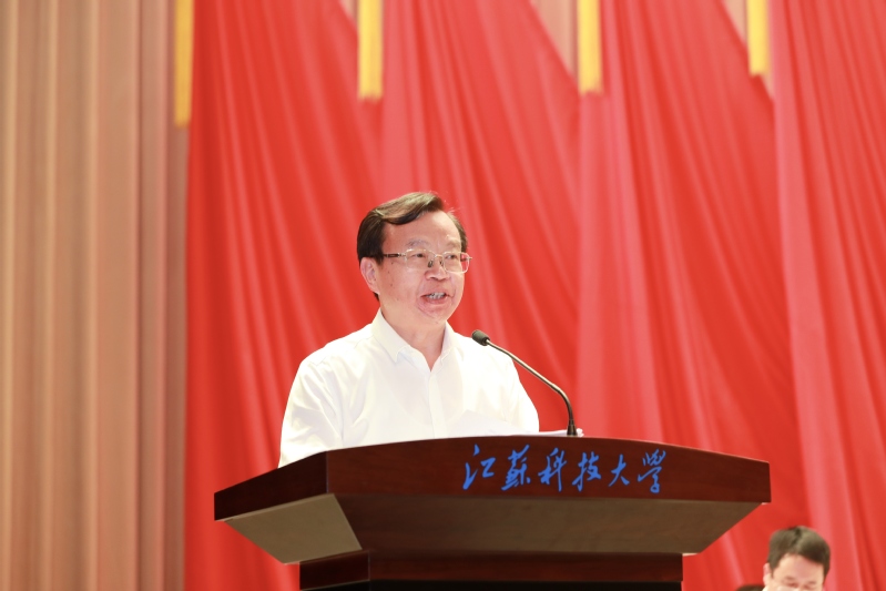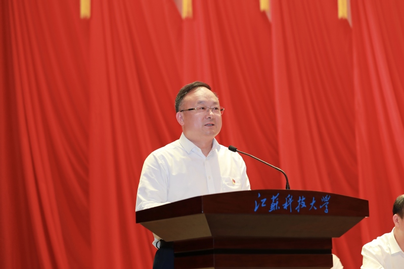 周南平号召,全体江科大人要更加紧密地团结在以习近平同志为核心的党中央周围,高举中国特色社会主义伟大旗帜,锚定特色一流,服务国家战略,踔厉奋发、勇毅前行,奋力开创高水平大学建设新局面,努力为江苏在推进中国式现代化中走在前、做示范,为全面建设社会主义现代化国家、全面推进中华民族伟大复兴作出新的更大贡献!