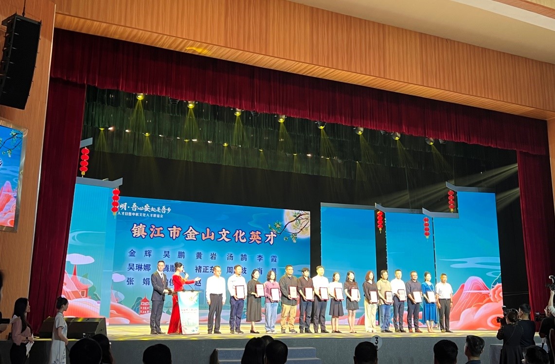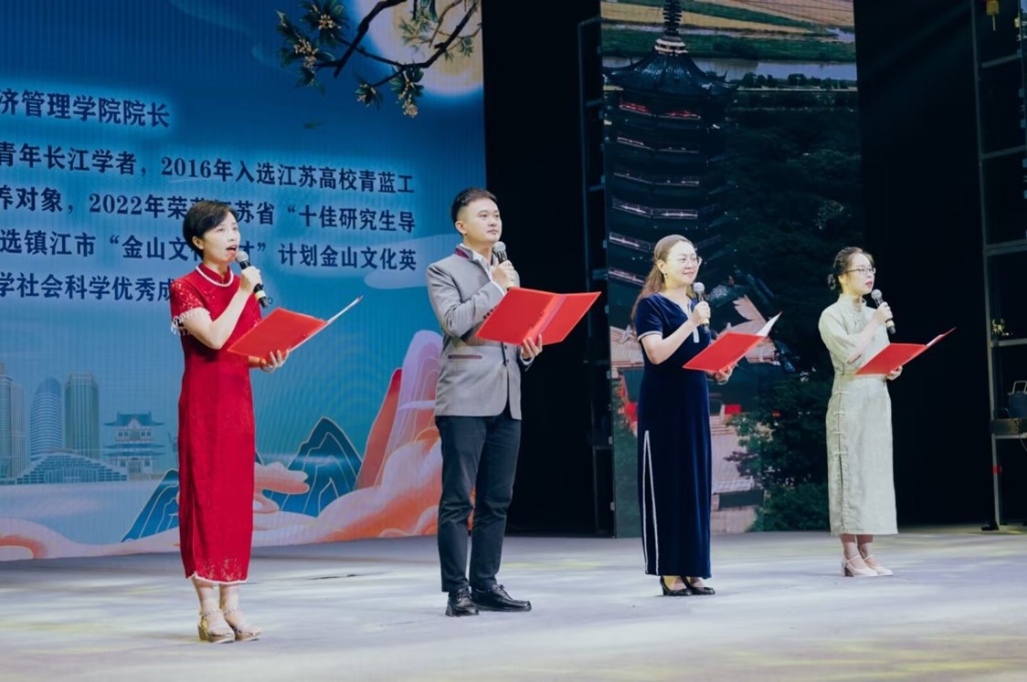 活动现场,相关领导为2023年“镇江市金山文化名家”“镇江市金山文化优青”“镇江市金山文化英才”“镇江市第六期‘169工程’学术技术新秀”等文化人才颁发了奖牌和证书。本次新蒲京官网教师金辉教授增补为镇江市金山文化英才。此前,新蒲京官网教师王念新、孟庆良教授及江雪博士获首期金山文化英才,徐兰教授获首期金山文化优青。徐兰教授受邀参加诗朗诵节目表演,与其他三位金山文化人才一起朗诵诗歌《满目俊杰,意兴飞扬》,用铿锵有力的声音,讲述镇江这座历史文化名城的古往今来。