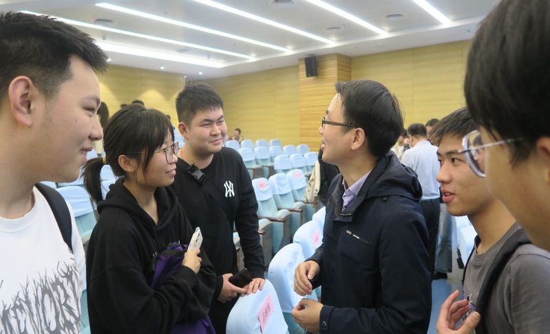 聘任仪式结束后,导师和本科生见面交流。