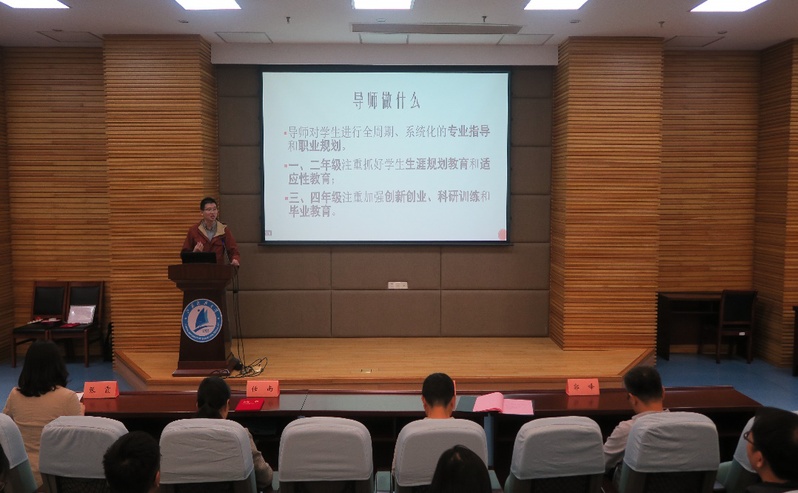 姜文刚院长宣读“班级指导老师”和“本科生导师”聘任文件,为任南副校长颁发班级指导老师聘书,并为与会老师颁发本科生导师聘书。