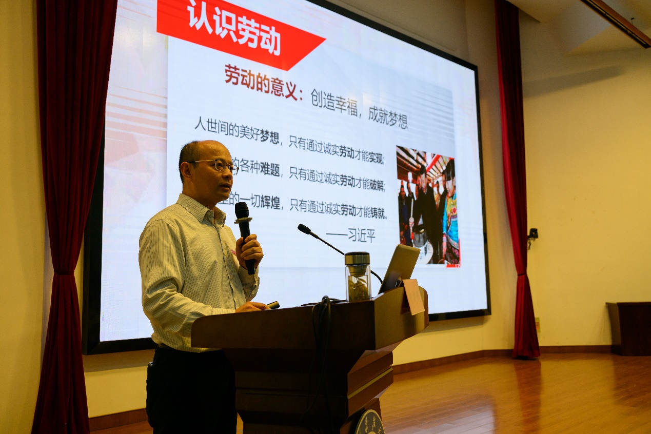 课程伊始,为帮助大家树立劳动观念,全面理解和把握劳动的价值和意义,提高劳动意识,杨院长通过马克思、罗曼·罗兰等名人对劳动的论述,以及习近平总书记关于劳动的重要论述和党的二十大报告中有关内容展开。随后杨院长通过“劳动是什么?你会劳动吗?”“国家推行在学校强化劳动教育,你理解吗?”等互动性问题开启了本次课程授课。