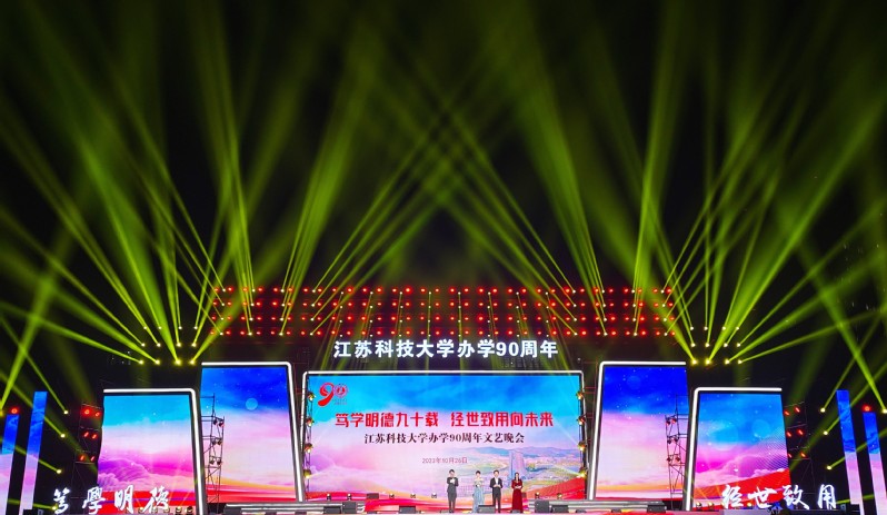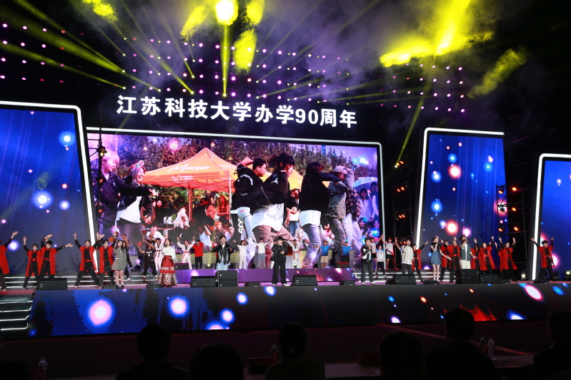 夜幕下的新蒲京娱乐场官网3245长山校区灯火璀璨,文理大楼教室灯光错落组成“JUST90”字样,西操场霓虹闪耀,云帆造型的舞台炫彩亮相,新蒲京娱乐场官网3245这艘巍巍巨轮已张满风帆,即将从新的历史起点远航。晚会分为“寻梦”“圆梦”“远航”三个篇章,致敬江科大90载风雨兼程的光辉岁月,艺术呈现学校立足“船舶、海洋、蚕桑”办学特色,服务国家战略,托举青春梦、科大梦、中国梦的生动现实,展望学校奋力开创高水平大学建设新局面的美好蓝图。
