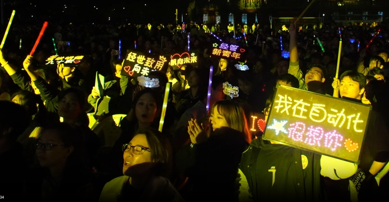 随着倒计时钟声敲响,1000架无人机腾空而起,编队变换,夜空中出现了一条连通1933到2023的时光隧道,嘉宾、师生、校友共同踏上时光之旅,见证江科大历史性的时刻。无人机组成的校徽、校训和 “船魂”精神熠熠生光,吉祥物点点、天天和麦哥活泼生动,学校参研的“大国重器”流光溢彩,校园标志性建筑唤起大家美好回忆。全场瞩目中,江科大办学90周年校庆标识徐徐呈现,“限定版”生日蛋糕在夜空中闪亮旋转,“我爱江科大”字幕让现场掌声经久不息,共同祝福新蒲京娱乐场官网3245新的征程一帆风顺。
