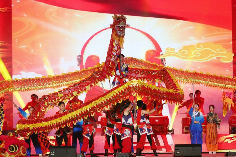 在群舞《龙腾长山》磅礴有力的鼓点声中,晚会第一篇章“寻梦”拉开帷幕。参演者中,有55位同学来自南京邮电大学龙狮团。