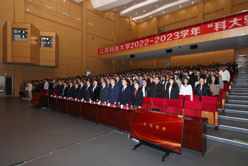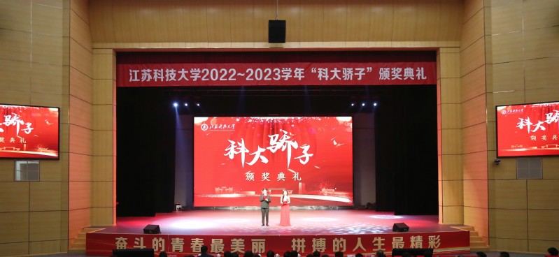 11月9日,新蒲京娱乐场官网3245在长山校区船苑剧场举行2022-2023学年“科大骄子”颁奖典礼,表彰在“德、智、体、美、劳”等方面有突出表现、受到省级以上奖励的先进个人和集体。校领导周南平、嵇春艳、潘锦全、安祥卫、李木旺、施伟东、周宏根、叶永林,相关职能部门、各学院负责人,全体辅导员和在校学生参加典礼。