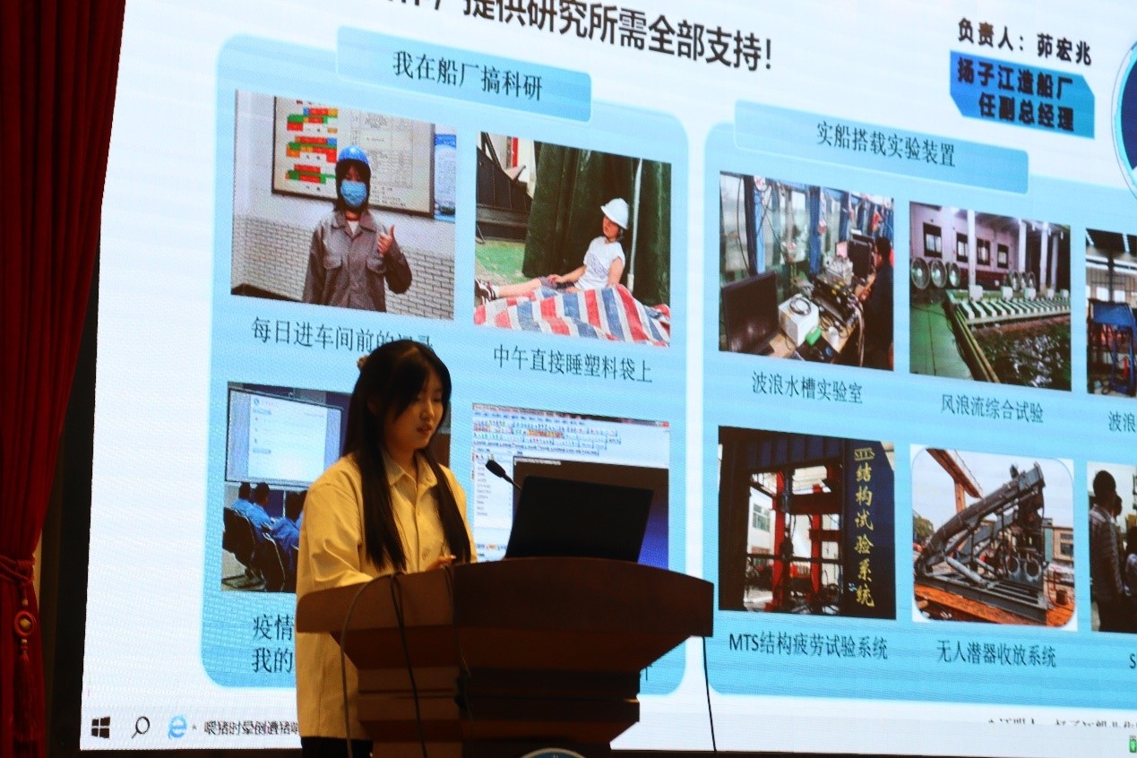 船舶与海洋工程专业的胡圆圆同学,以“踔厉奋发,驶向深蓝”为主题,以船拟人,向大家讲述了她心底之船的建设过程,并和大家分享了她针对学业总结出的写笔记、做计划和立志向这“三大法宝”,以亲手写下的每日计划为动力,找到属于自己的学习节奏,立足学科竞赛,在实践中检验自己的学习成果,将专业知识运用与实际。此外,胡圆圆同学还热心公益慈善事业,为中国乡村发展筹款万元,用自身的力量回报社会。