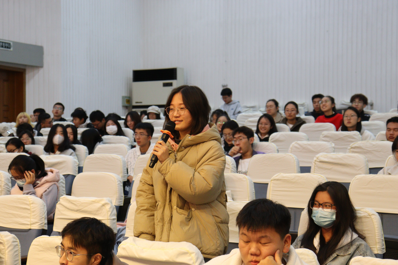 在五位优秀同学分享结束后进入了提问互动环节,现场的同学们积极热情的与学长学姐交流,对于“文科专业如何参与科研竞赛”“在学校课程结束后如何开展更为深入的学习”“如何学好高数”等方面进行了踊跃提问,各位优秀同学也耐心地给予了详尽的解答,帮助同学们适应全新的学习生活。